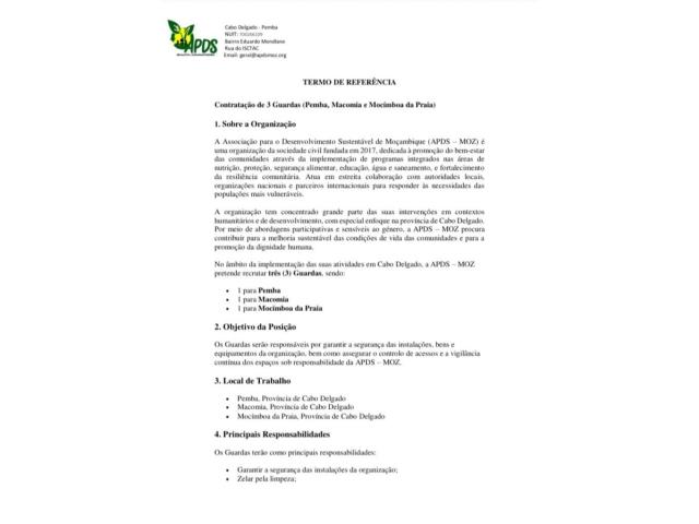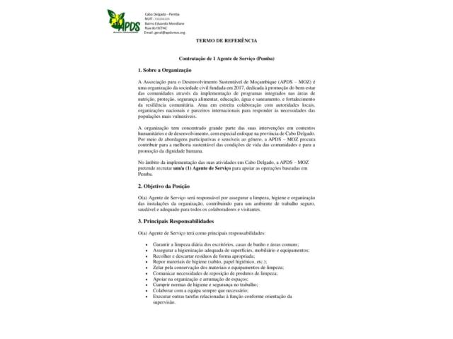 Vaga – Técnico Administrativo da Escolinha Comunitária – Chongoene