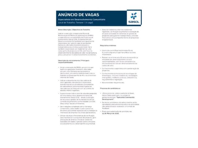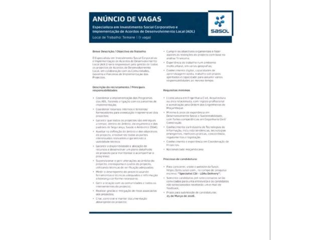 Vaga – Inspetor AIA Júnior – Inhambane (Temane)