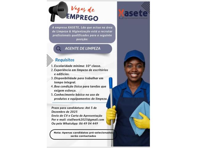 Vaga para Auxiliar de Limpezas com 10ª Classe.