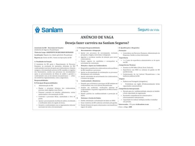 VAGA – ASSISTENTE DE RECURSOS HUMANOS
