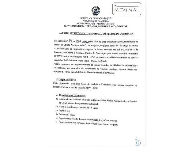 Vagas no Aparelho do Estado: (06) Vagas para Mentor/as com 10* Classe